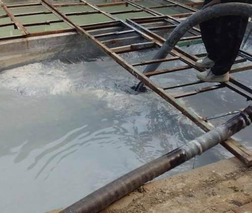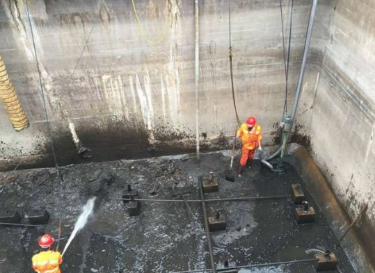 7、当污水池的淤泥和淤泥几乎被抽上来时,再次使用高压清洗车反复清洗污水沉淀池周围的墙壁,直到被清洗干净,池底已经被清洗过的污泥被泵上来脱水固化。